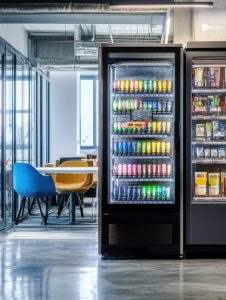 - Modern Vending for Warehouses and Offices: Keep employees energized with snacks, drinks, and healthy options without leaving the workplace.